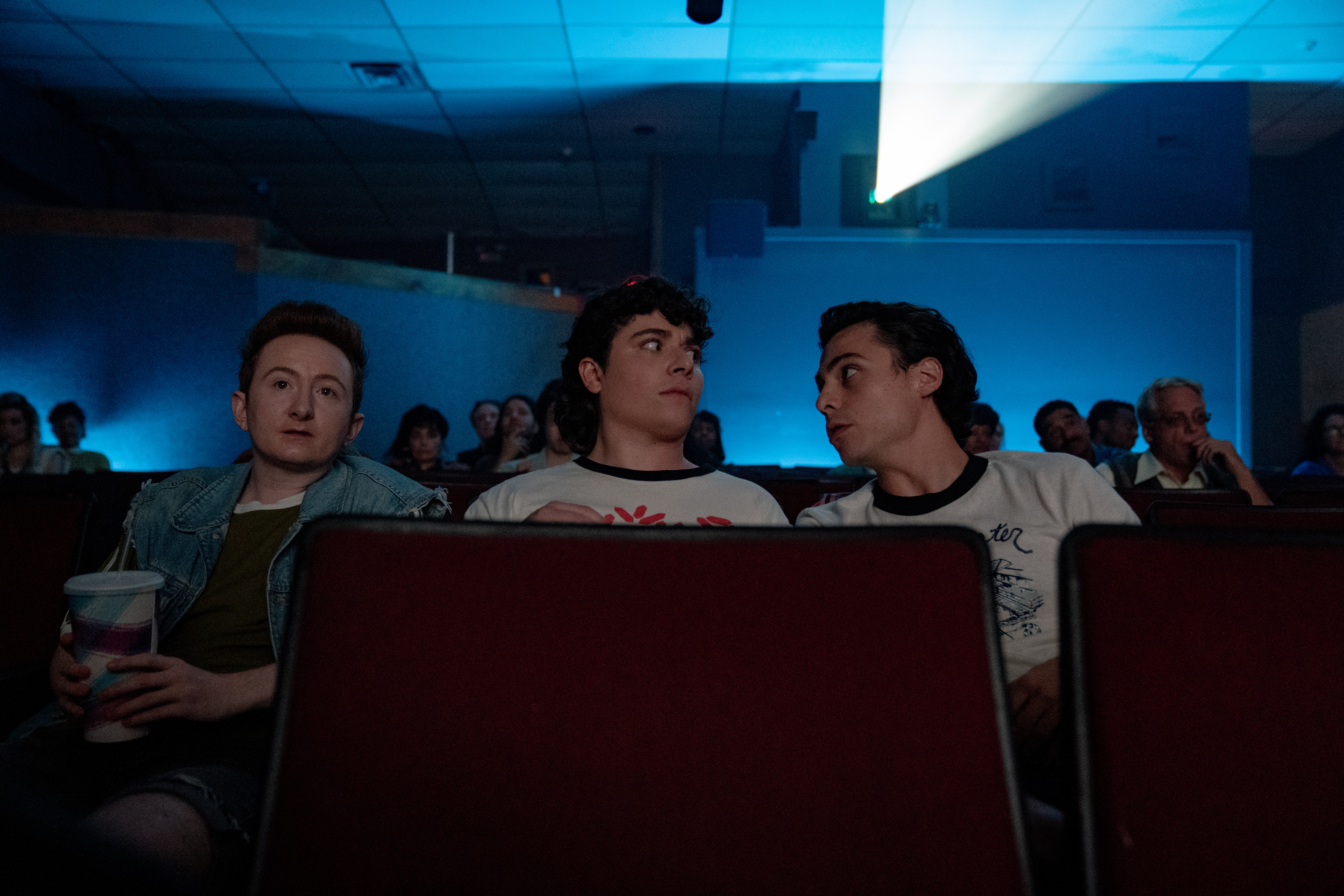 “The 4:30 Movie” is described as semi-autobiographical and is said to be loosely based on Smith’s early adventures of going to the movies along with his early romantic escapades. The film’s main character is named Brian David, and he’s played by Austin Zajur. Brian has a huge crush on Melody Barnegat, played by Siena Agudong. He had a chance to take things further with Melody the previous summer, but he was a little too shy and timid. He’s lived with that regret for a full year, so he’s looking forward to connecting with her when he invites her to the movies with his two buddies, Burny (Nicholas Cirillo) and Belly (Reed Northrup). This is a big moment for Brian, one that he has been waiting for and thinking about for a full year.
