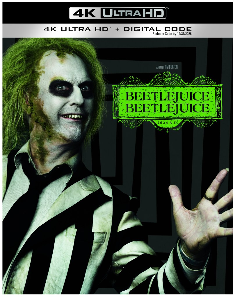 4K Info: “Beetlejuice Beetlejuice” is being released on a single disc 4K from Warner Brothers Home Entertainment. It also comes with a digital copy of the film. The film has a running time of 104 minutes and is rated PG-13 for violent content, macabre and bloody images, strong language, some suggestive material, and brief drug use. You can either buy the 4K slipcover or the 4K steelbook.